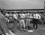 SPORTS | BASEBALL | ST. LOUIS MAYOR DARST IN STANDS FOR ST. LOUIS BROWNS OPENING DAY | JOE WOOD WITH CAMERA |